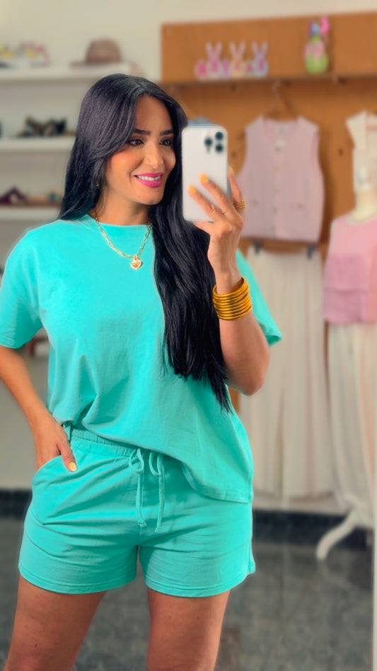 AgotadoMint Cotton Shirt & Shorts Set