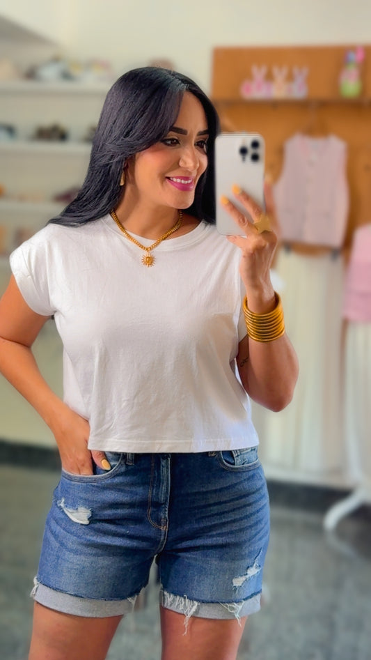 Cotton Folded Crop Basic Tshirt