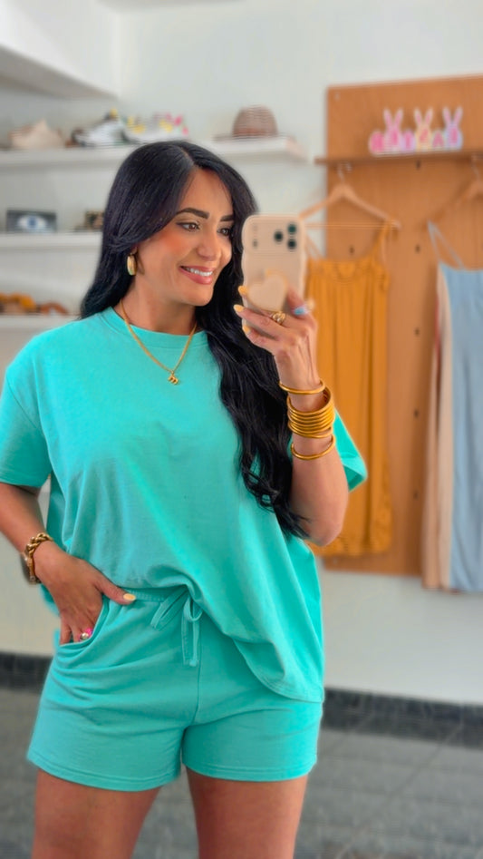 RESTOCK Mint Cotton Shirt & Shorts Set